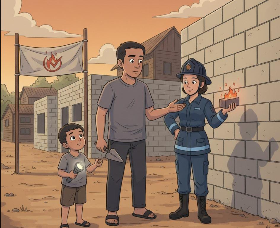 Damkarmatan Kota Bangun Kenalkan Bahan Bangunan Tahan Api untuk Warga yang Sedang Membangun Rumah