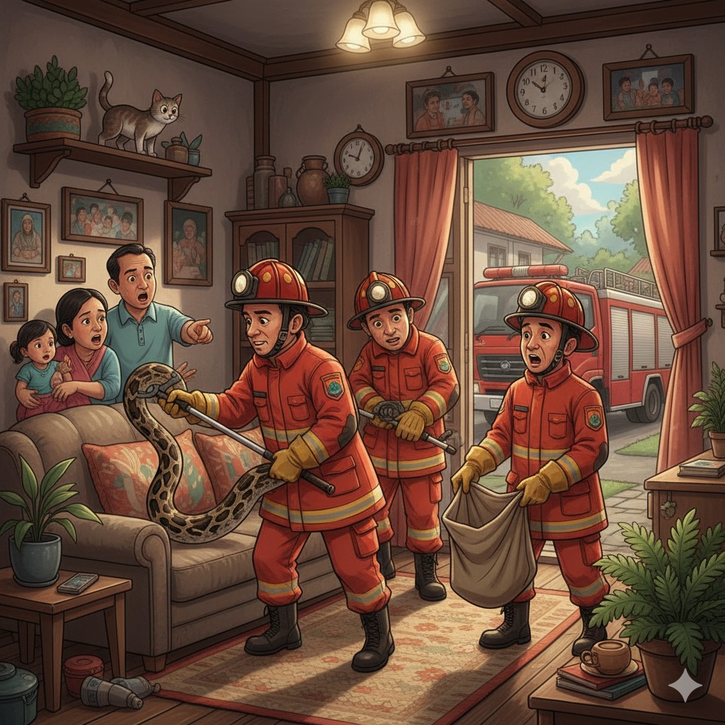 Damkarmatan Kota Bangun, Garda Terdepan Atasi Hewan Liar di Rumah Warga