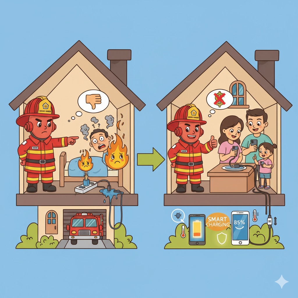 Untuk mengurangi risiko, warga dianjurkan menggunakan charger resmi atau berlabel SNI, serta memastikan kabel dan adaptor dalam kondisi baik tanpa kabel sobek atau longgar. Penggunaan kabel berkualitas tidak hanya mencegah kebakaran, tetapi juga menjaga umur baterai tetap optimal.