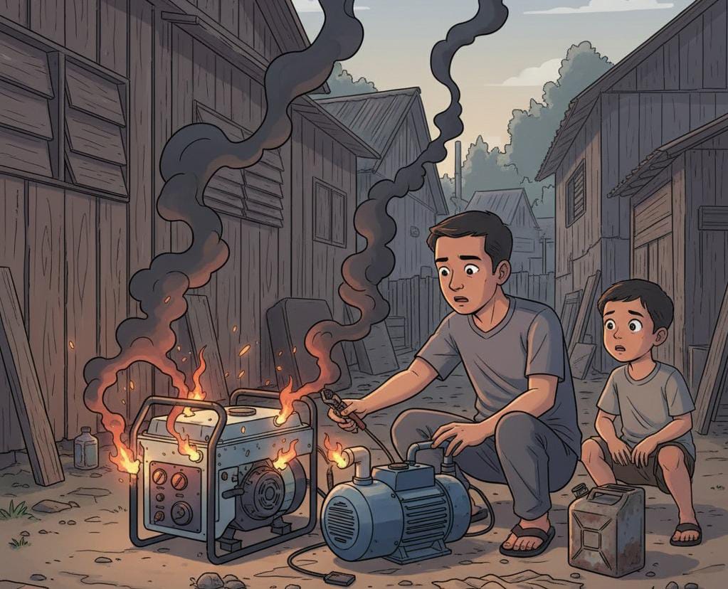 Abdi menjelaskan bahwa pompa air yang mengeluarkan suara kasar, getaran tidak wajar, atau aroma hangus adalah tanda bahwa mesin sudah terlalu panas. Kondisi ini semakin berbahaya jika pompa ditempatkan menempel pada dinding kayu atau berada di ruang sempit tanpa ventilasi. Panas yang terperangkap dapat dengan cepat membakar debu dan serpihan kayu di sekitarnya.