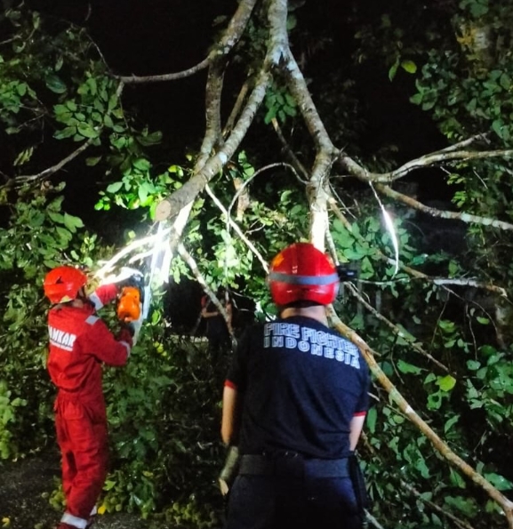 Kinerja Cepat Damkarmatan Muara Muntai dalam Penanganan Pohon Tumbang